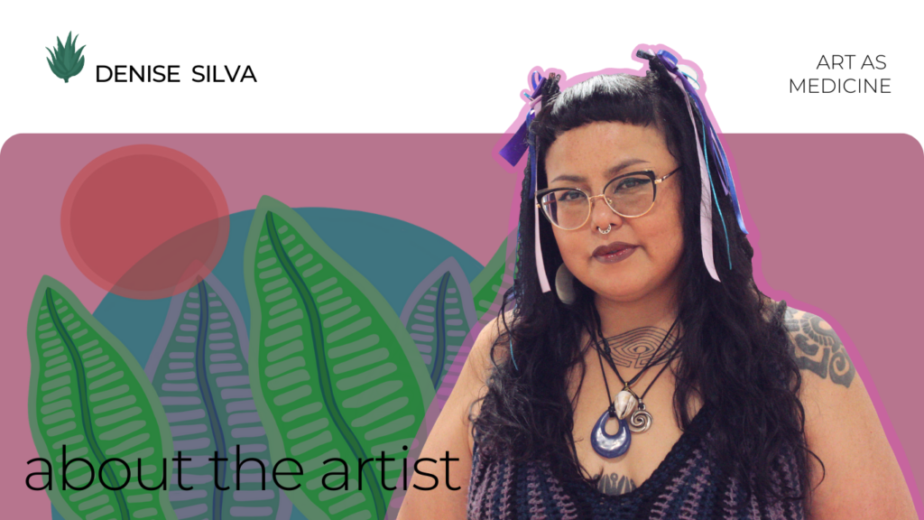 Born in East Los Angeles and raised in Riverside, California, Denise Silva (Xicana / Hopi / Mescalero Apache) is an indigenous femme, a mother of 6 seeds and a total Pisces sun + Cancer moon who loves to explore plant medicine + mysticism and weaving those experiences into her world of art.  In her earlier years, she attended Riverside Community College and went on to graduate from California State University, Los Angeles in the late 90’s where she studied art + illustration.